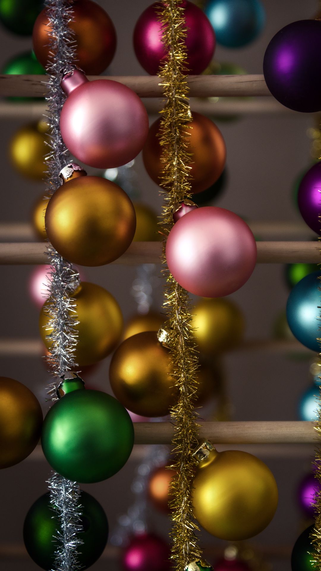 1080x1920 шары, мишура, украшения, разноцветный, новый год, рождество, праздники обои samsung galaxy s4, s5, note, sony xperia z, z1, z2, z3, htc one, lenovo vibe
