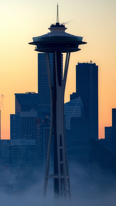 480x854 сиэтл, здания, небоскребы, архитектура, город, туман, рассвет обои nokia lumia 630, sony ericsson xperia