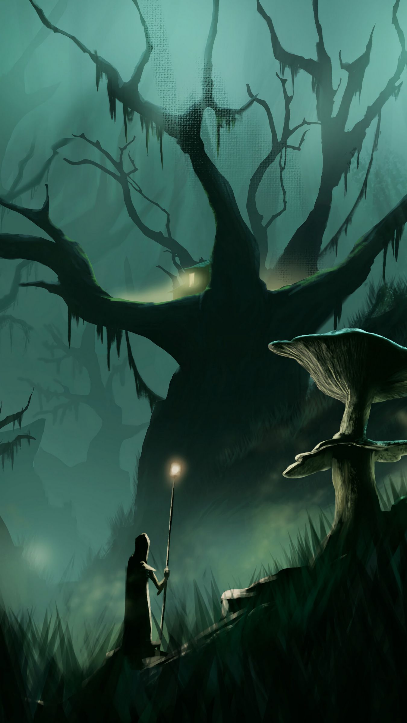 1350x2400 силуэт, дерево, гриб, путешествие, арт обои iphone 8+/7+/6s+/6+ for parallax
