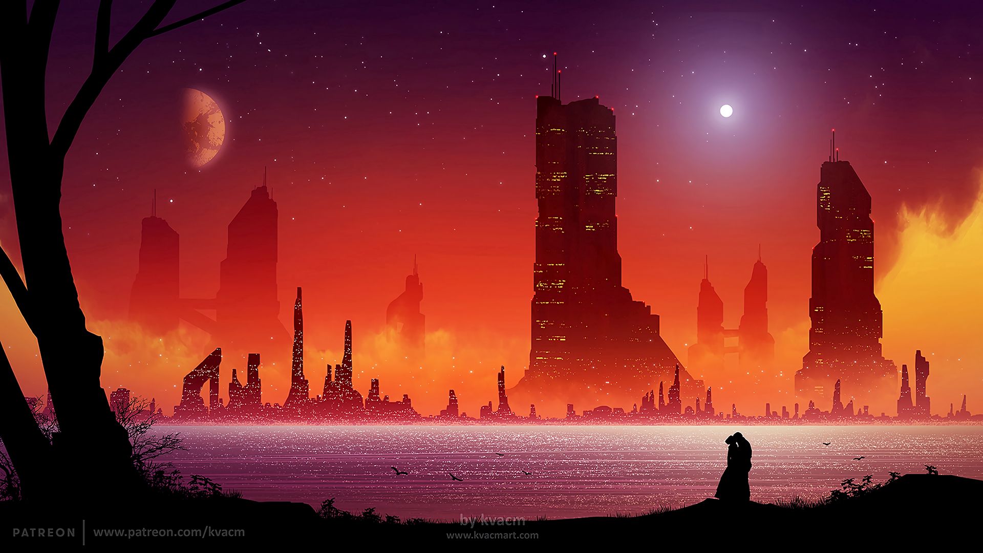 1920x1080 силуэты, пара, поцелуй, ночь, арт обои full hd, hdtv, fhd, 1080p
