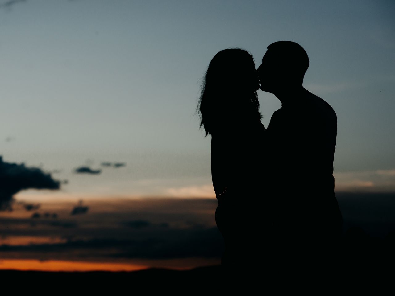 1280x960 силуэты, поцелуй, пара, любовь, объятия, романтика, ночь обои стандарт 4:3