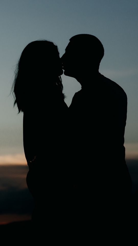 540x960 силуэты, поцелуй, пара, любовь, объятия, романтика, ночь обои samsung galaxy s4 mini, microsoft lumia 535, philips xenium, lg l90, htc sensation