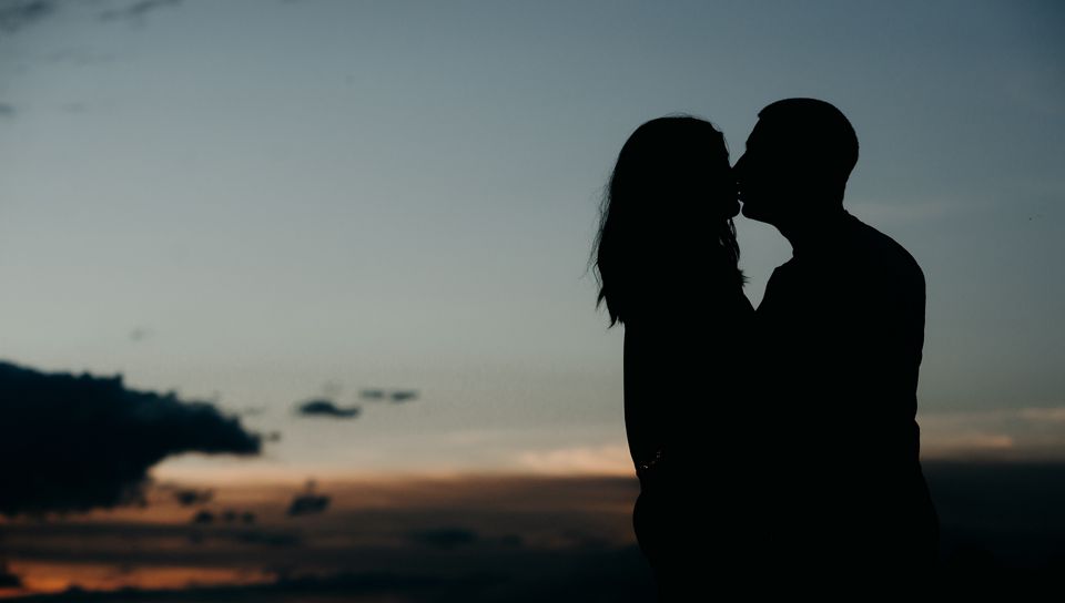 960x544 силуэты, поцелуй, пара, любовь, объятия, романтика, ночь обои playstation ps vita