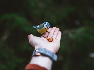 320x240 синица, рука, птица, еда обои nokia e72, e71, asha, alcatel onetouch