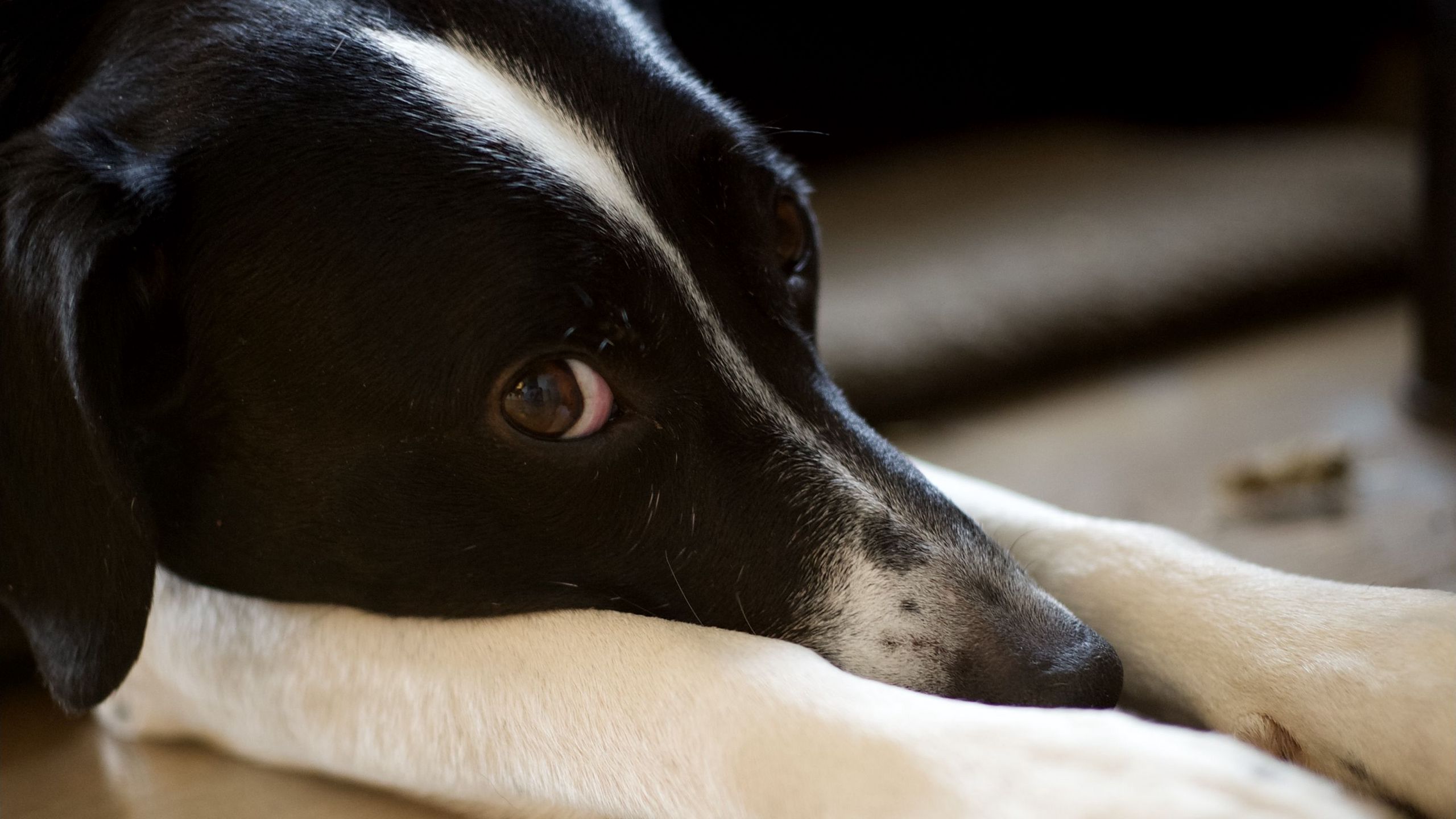 2560x1440 собака, питомец, взгляд, поза обои 16:9