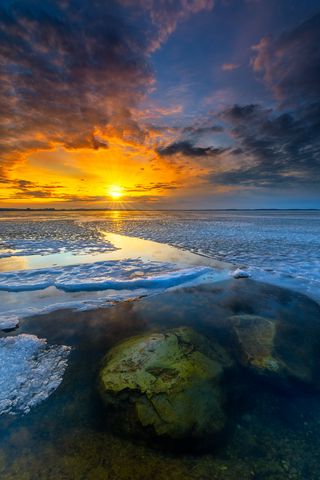 320x480 солнце, горизонт, лед, камень обои samsung galaxy ace gt-s5830, sony xperia e, miro, htc wildfire s, c, lg optimus