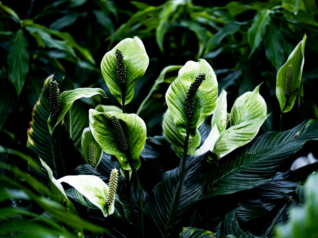 1024x768 спатифиллюм, листья, цветы, растение, зеленый, природа обои стандарт 4:3