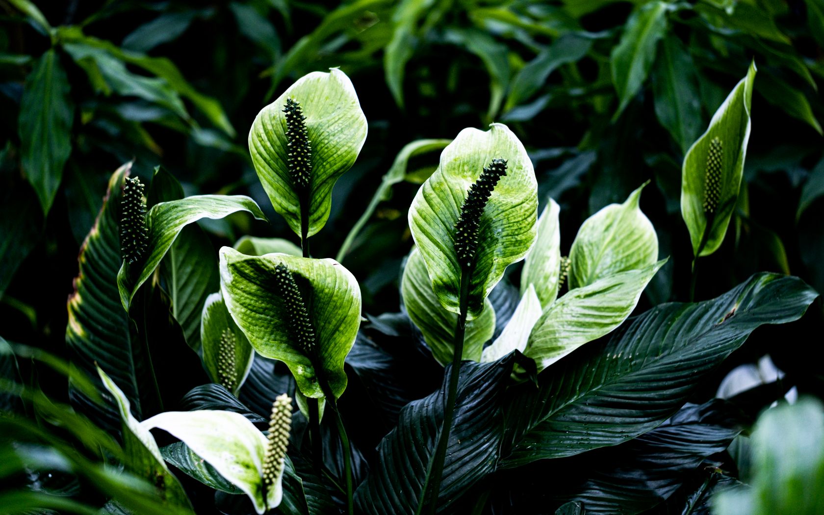 1680x1050 спатифиллюм, листья, цветы, растение, зеленый, природа обои 16:10