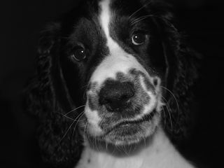 320x240 спрингер спаниель, собака, чб, пятнистый, питомец обои nokia e72, e71, asha, alcatel onetouch