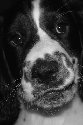 320x480 спрингер спаниель, собака, чб, пятнистый, питомец обои samsung galaxy ace gt-s5830, sony xperia e, miro, htc wildfire s, c, lg optimus