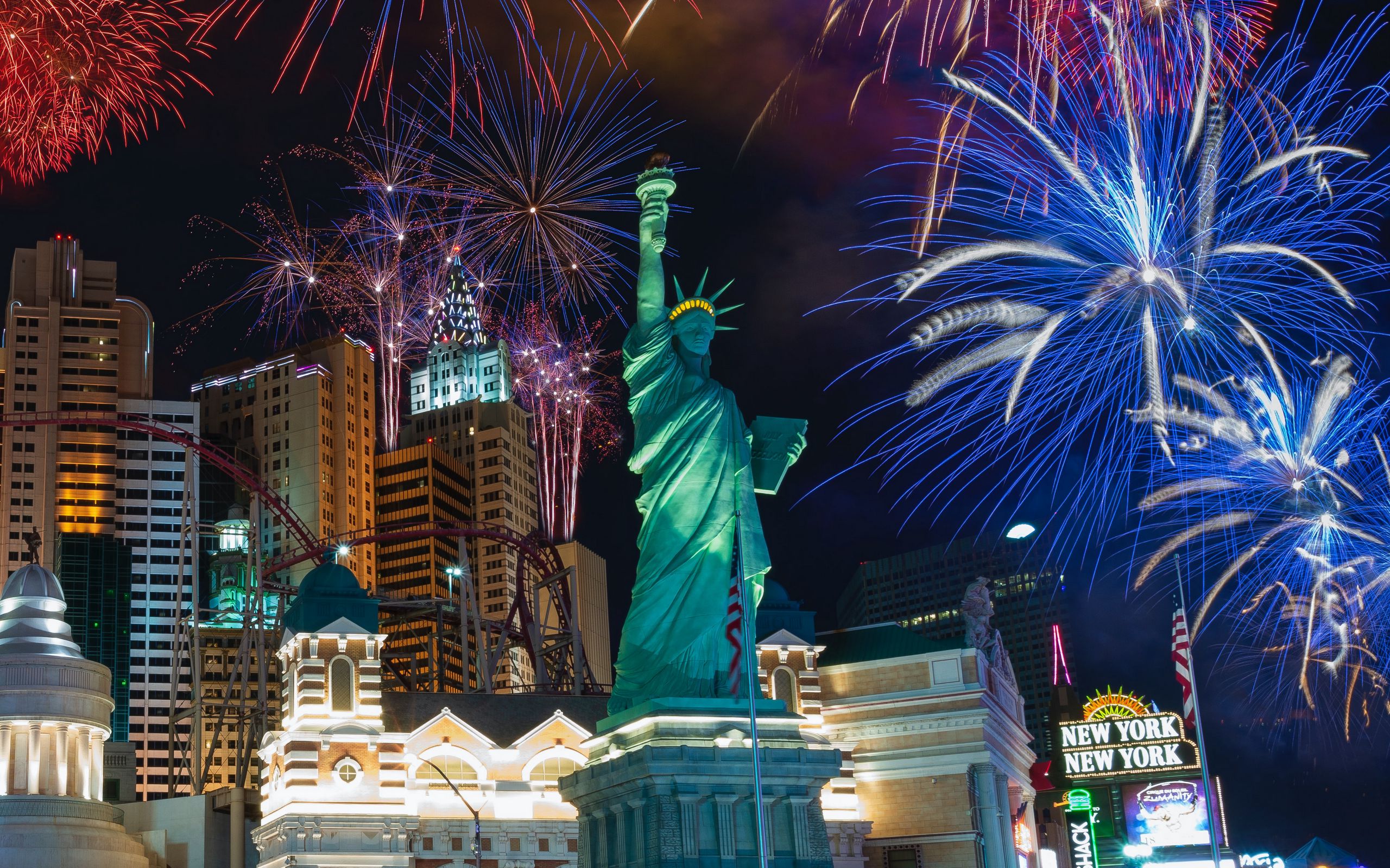 2560x1600 статуя, здания, архитектура, салют, длинная выдержка обои 16:10