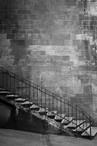 320x480 стена, лестница, чб, кирпичный, перила обои samsung galaxy ace gt-s5830, sony xperia e, miro, htc wildfire s, c, lg optimus