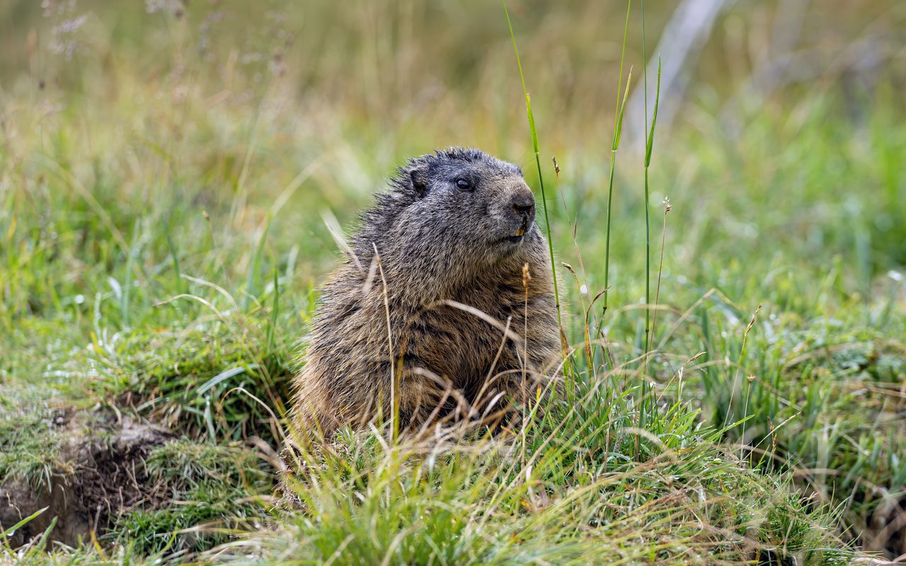 1280x800 сурок, трава, поле, маленький, животное обои 16:10