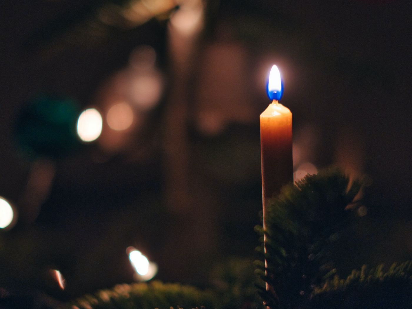 1400x1050 свеча, огонь, елка, новый год, рождество обои стандарт 4:3