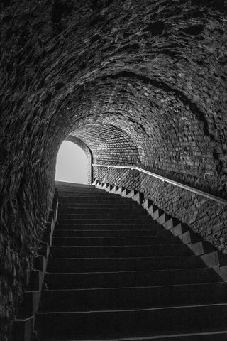 320x480 тоннель, лестница, чб, ступени обои samsung galaxy ace gt-s5830, sony xperia e, miro, htc wildfire s, c, lg optimus