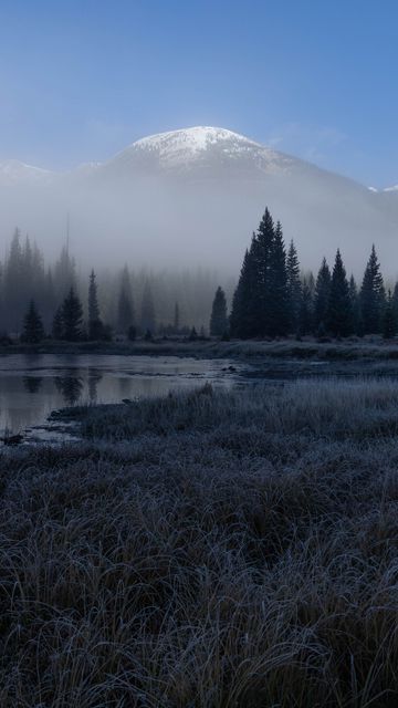 360x640 трава, озеро, деревья, лес, туман, горы, пейзаж, темный обои nokia n8, c5, c6, c7, e7, x6 nokia 5800, 5230, 5228, sony ericsson vivaz