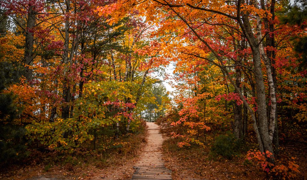 1024x600 тропа, деревья, листья, осень, лес, природа обои нетбук, планшет