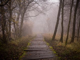 320x240 тропа, доски, лес, туман, деревья обои nokia e72, e71, asha, alcatel onetouch
