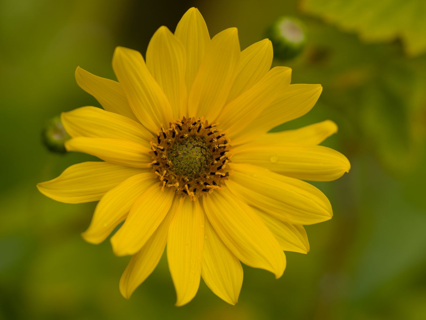 1400x1050 цветок, лепестки, капли, макро, желтый, блюр обои стандарт 4:3