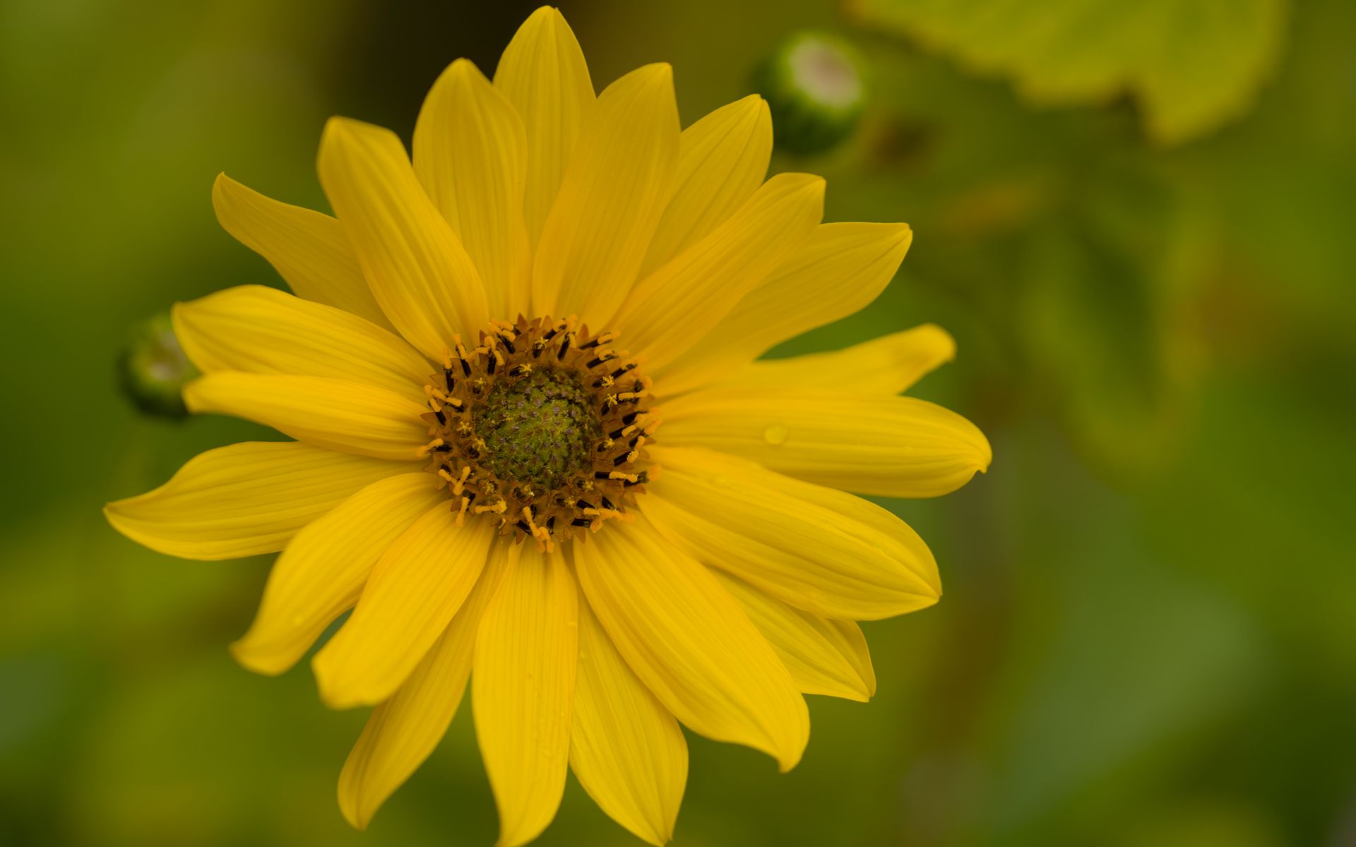 1920x1200 цветок, лепестки, капли, макро, желтый, блюр обои 16:10