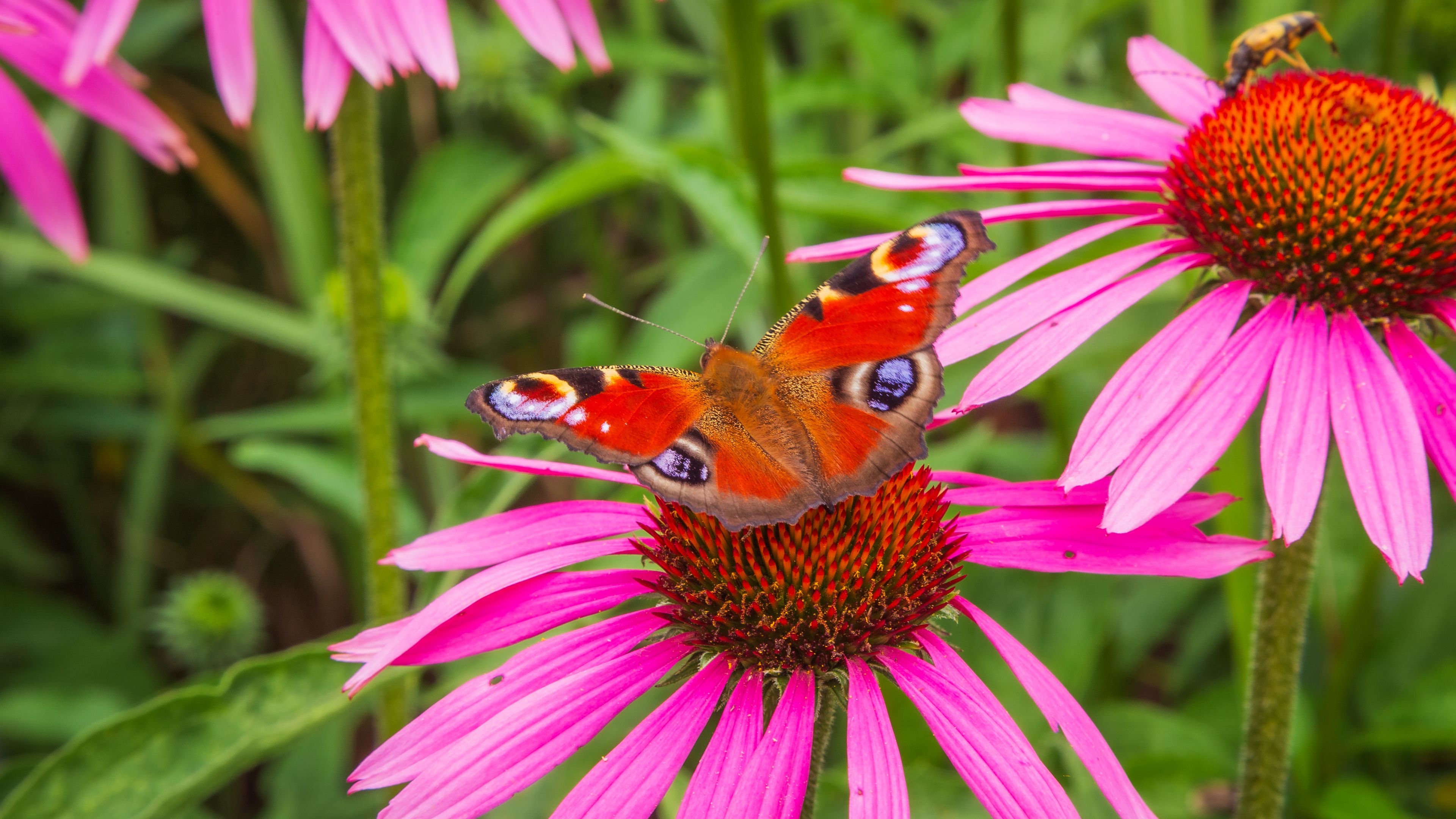 3840x2160 цветы, бабочка, лепестки, макро, растения обои 4k uhd 16:9