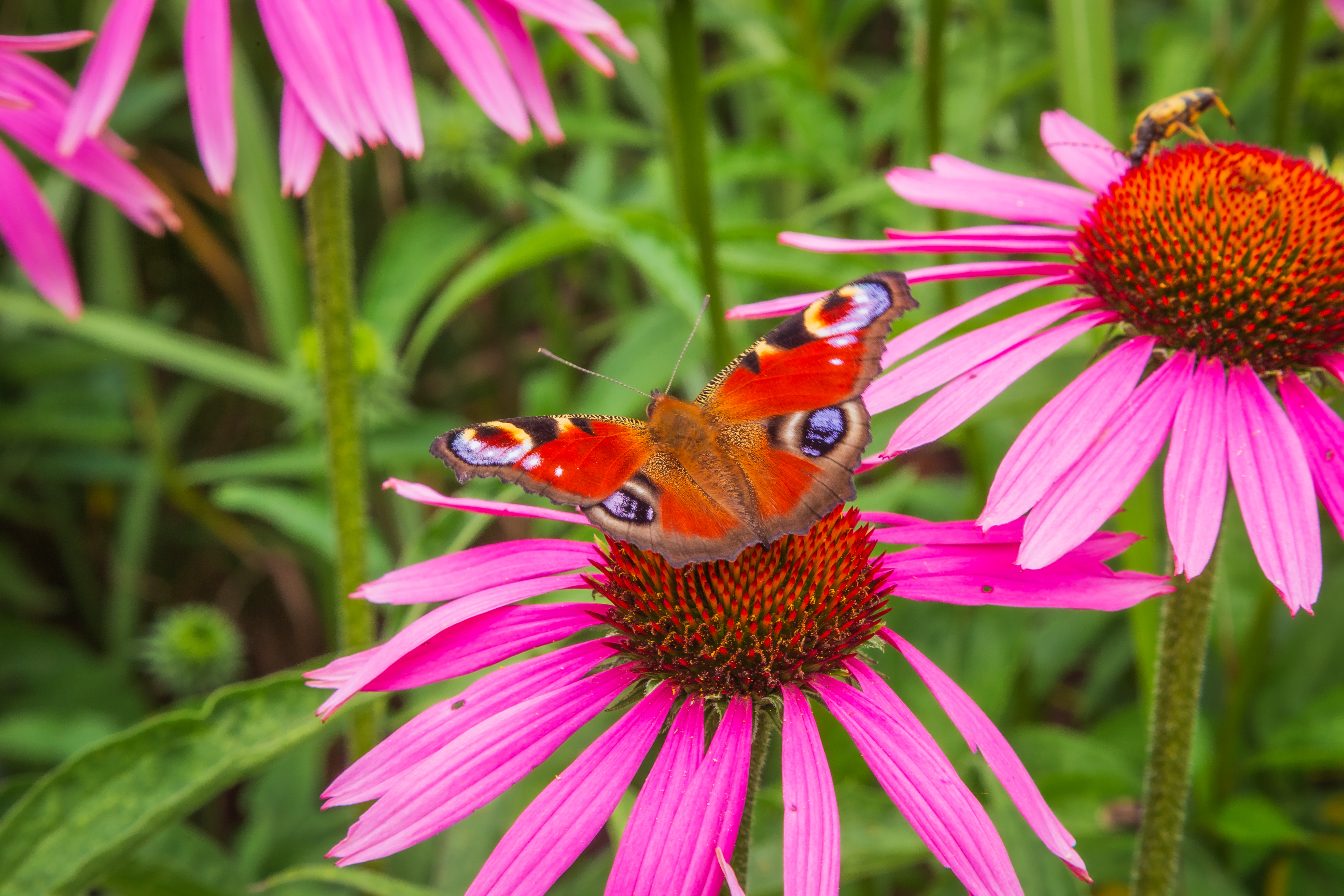 5472x3648 цветы, бабочка, лепестки, макро, растения обои