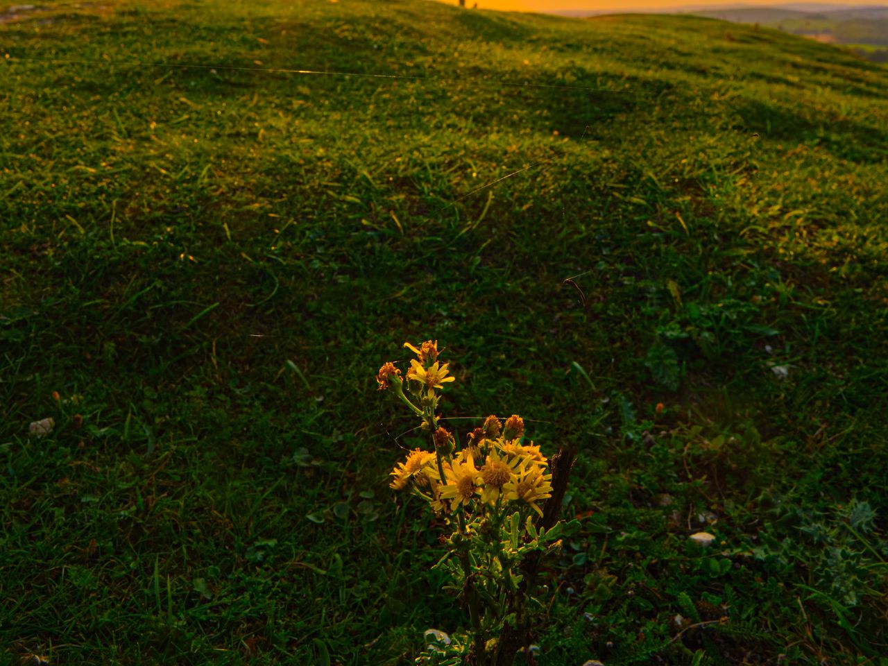 1280x960 цветы, дерево, солнце, трава, холм, рассвет, природа обои стандарт 4:3