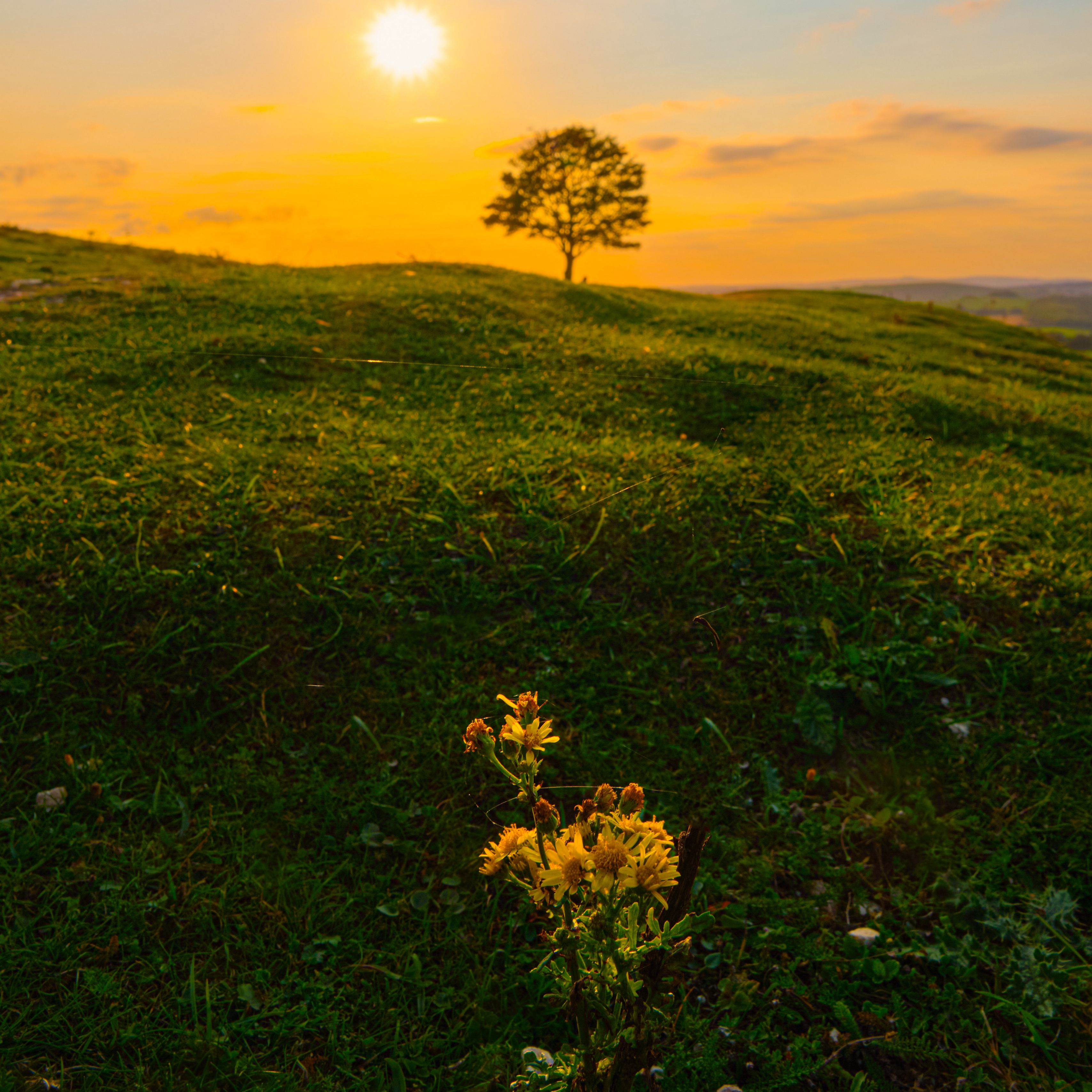 3415x3415 цветы, дерево, солнце, трава, холм, рассвет, природа обои ipad pro 12.9" retina for parallax