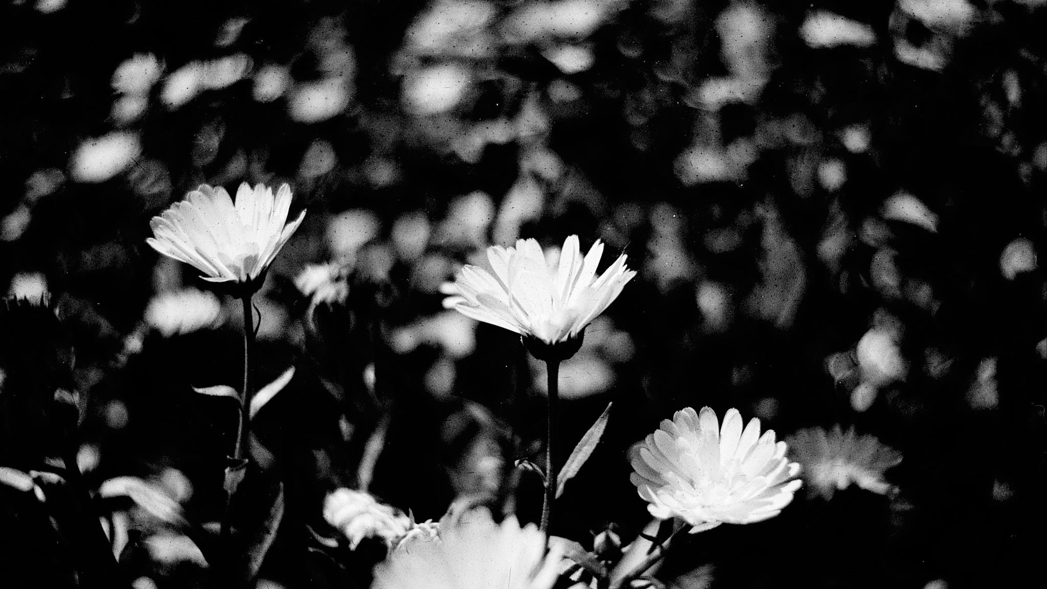 2048x1152 цветы, лепестки, бутоны, чб, листья обои ультраширокий монитор
