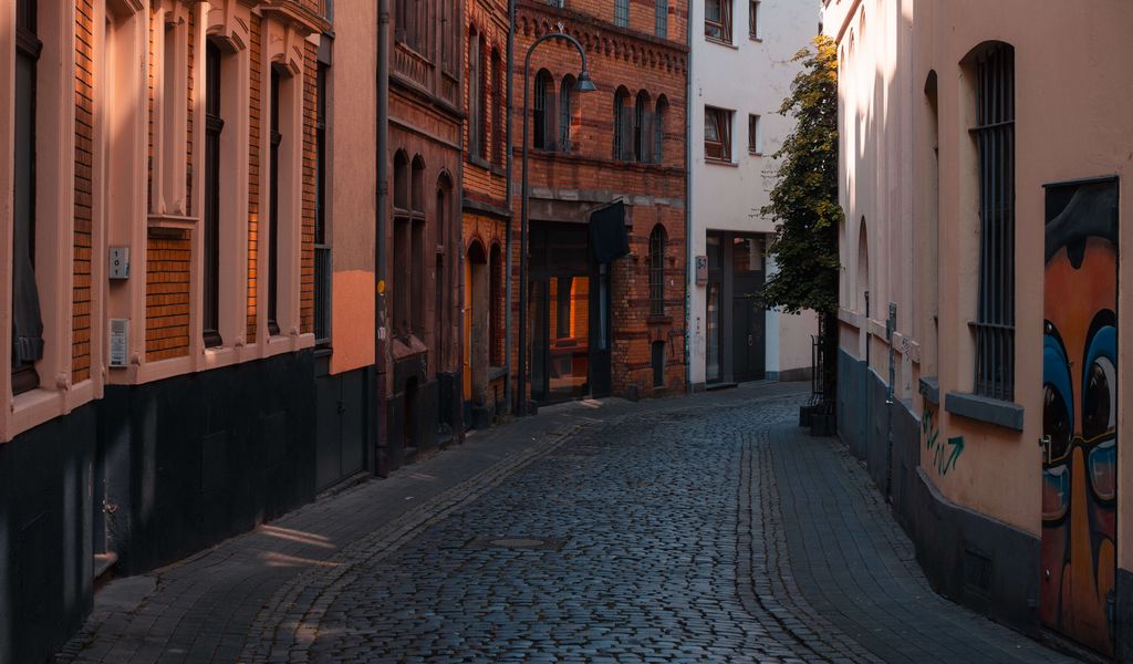 1024x600 улица, здания, брусчатка, архитектура, фонарь обои нетбук, планшет