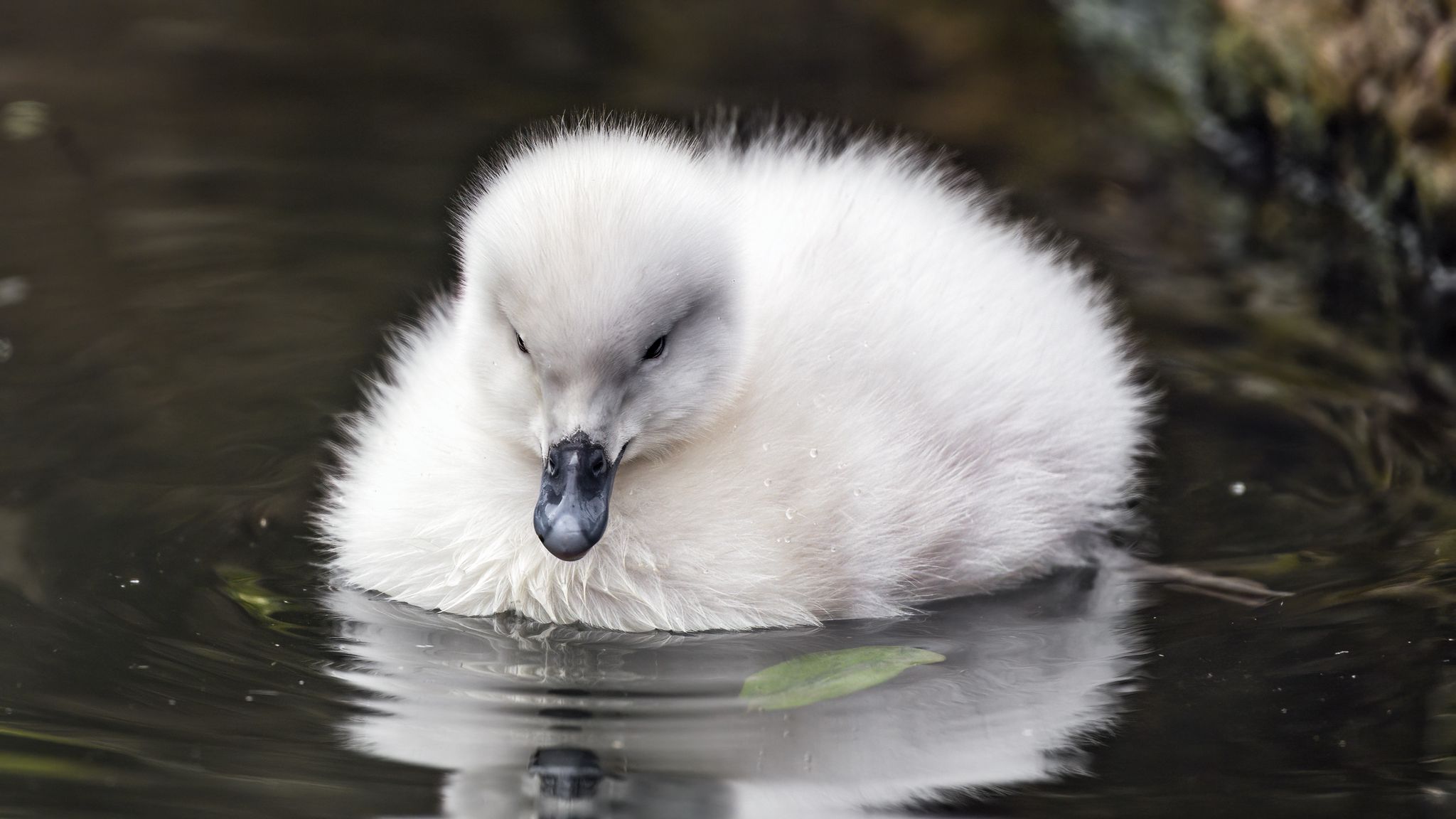 2048x1152 утенок, клюв, пушистый, пруд обои ультраширокий монитор