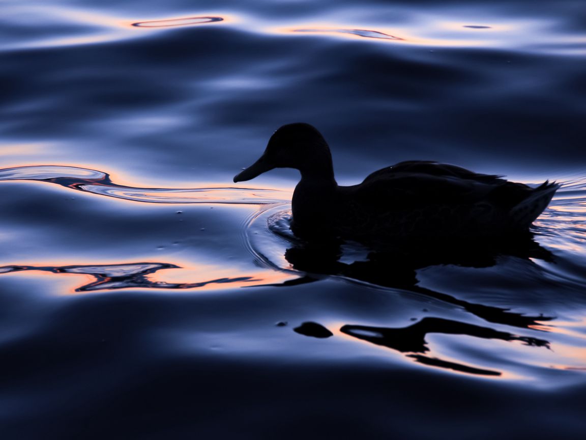 1152x864 утка, птица, силуэт, вода, темный обои стандарт 4:3