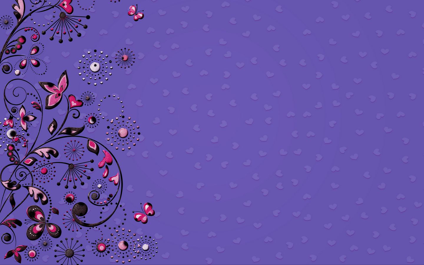 1440x900 узоры, цветы, бабочки, сердца, пурпурный обои 16:10