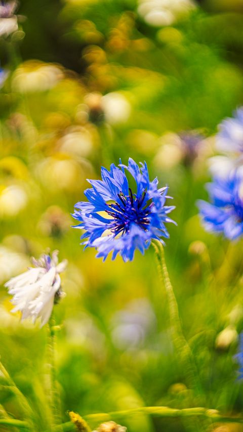 480x854 васильки, цветы, синий, размытие, природа обои nokia lumia 630, sony ericsson xperia