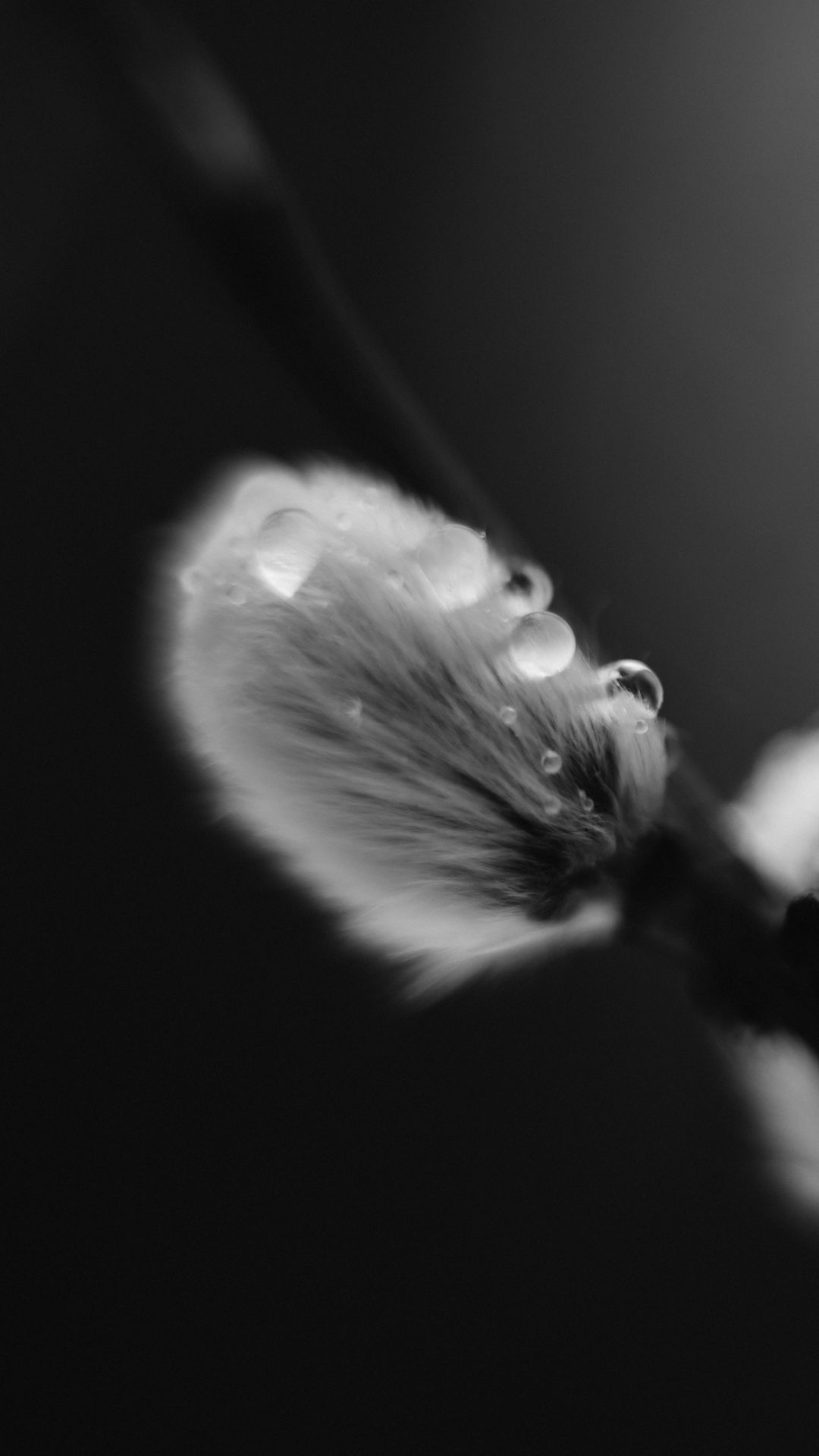 1080x1920 верба, почка, пух, капли, макро, черно-белый обои samsung galaxy s4, s5, note, sony xperia z, z1, z2, z3, htc one, lenovo vibe