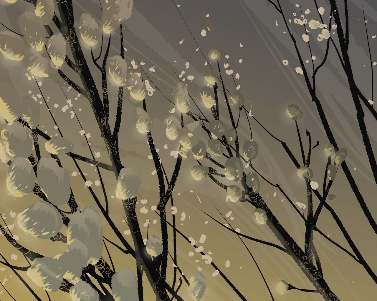 1280x1024 ветки, вектор, верба, цветы, арт, цветение обои стандарт 5:4