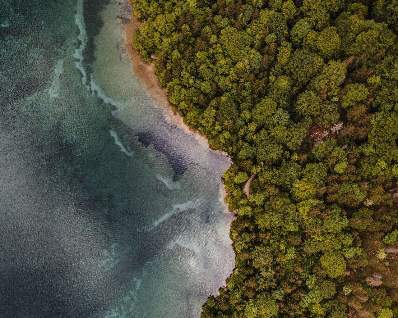 1280x1024 вид сверху, побережье, деревья, лес, море обои стандарт 5:4