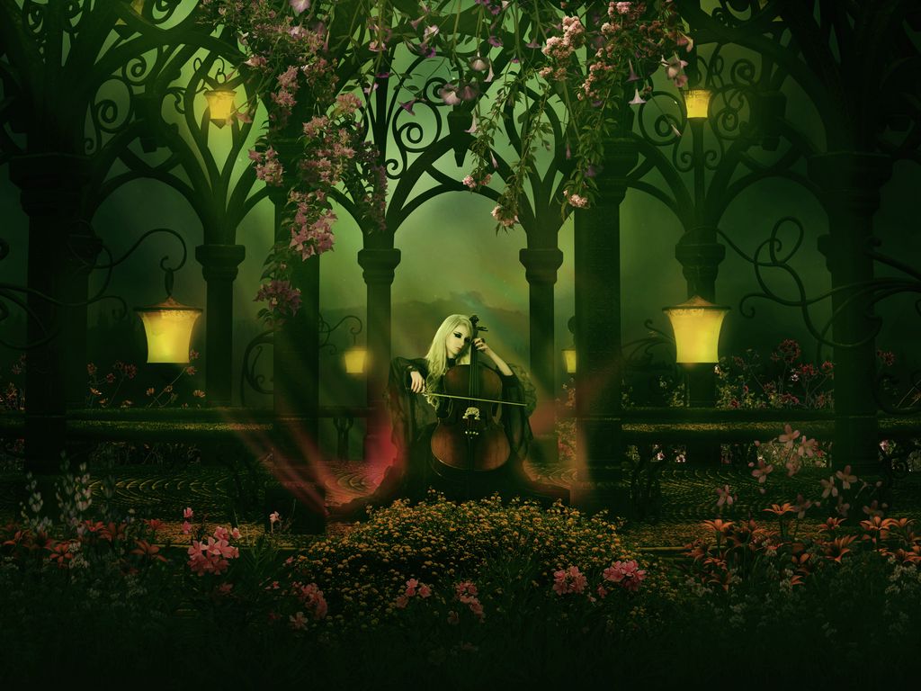 1024x768 виолончель, девушка, музыкальный инструмент, смычок, играть, фотошоп обои стандарт 4:3