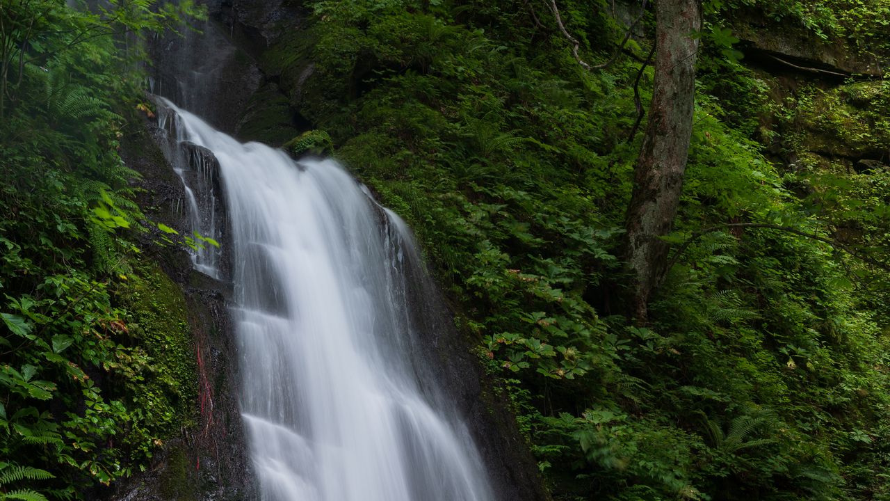 1280x720 водопад, брызги, поток, скала обои hd, hdv, 720p