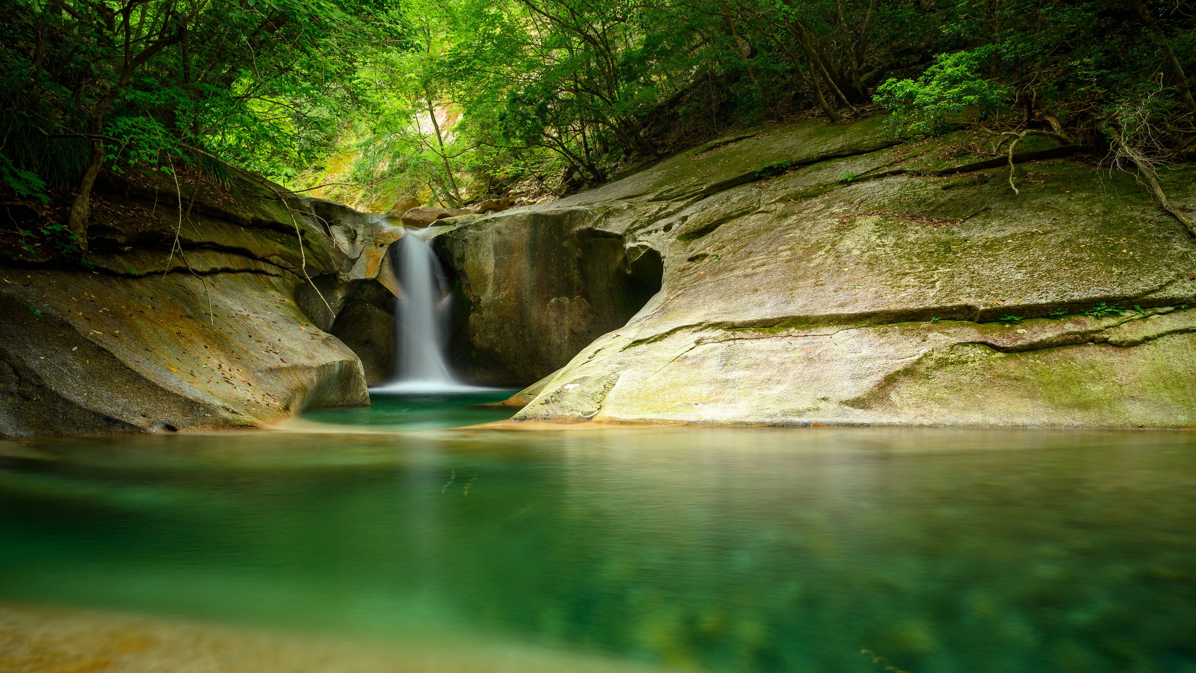 3840x2160 водопад, обрыв, каменный, вода, деревья, лес обои 4k uhd 16:9
