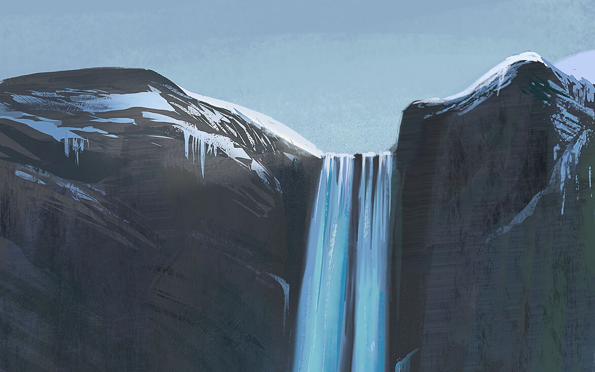 1920x1200 водопад, поток, скалы, холст, арт обои 16:10