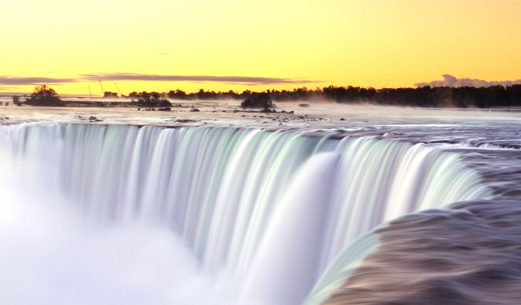 1024x600 водопад, поток, вода, горизонт обои нетбук, планшет