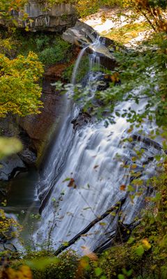240x400 водопад, скала, пейзаж, природа, листья обои nokia asha 311, samsung galaxy 580, omnia, lg kp500