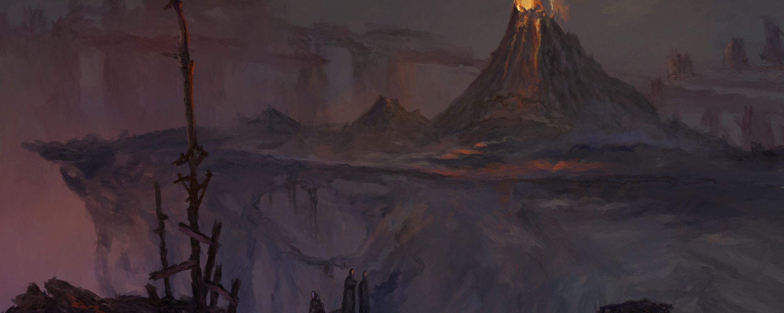 2560x1024 вулкан, извержение, мрак, темный, арт обои ультраширокий монитор