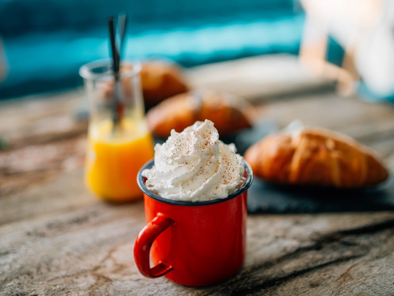 1280x960 взбитые сливки, круассан, размытие, еда обои стандарт 4:3