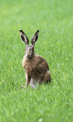 240x400 заяц, трава, поле, животное, зелень обои nokia asha 311, samsung galaxy 580, omnia, lg kp500