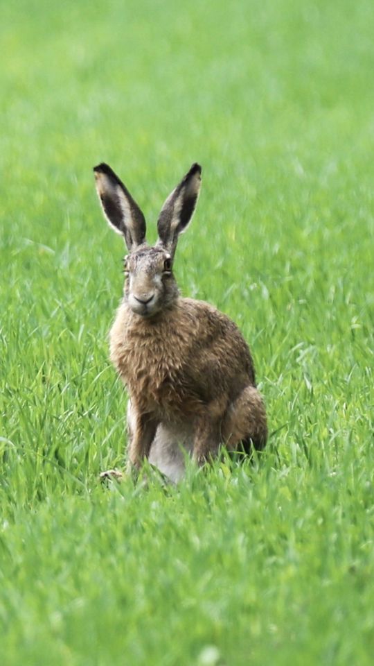 540x960 заяц, трава, поле, животное, зелень обои samsung galaxy s4 mini, microsoft lumia 535, philips xenium, lg l90, htc sensation