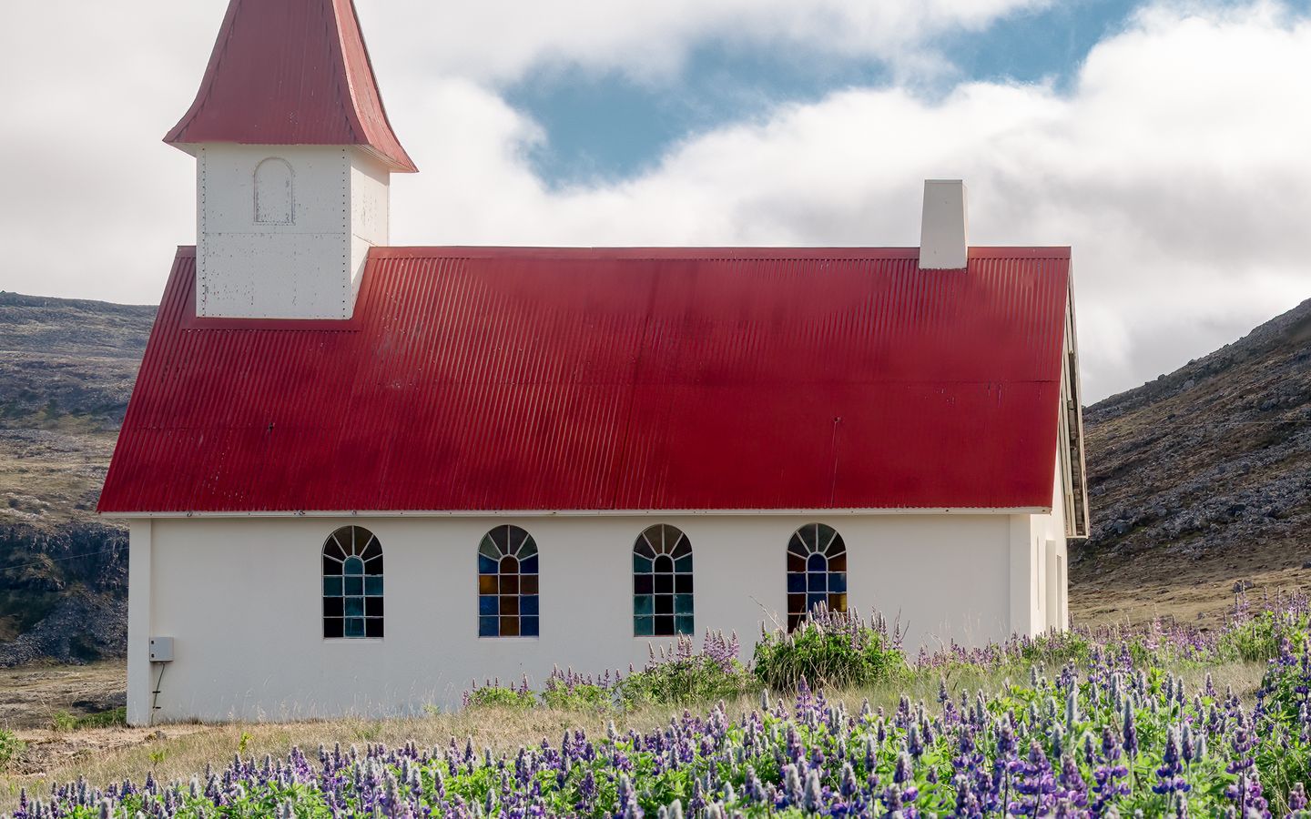 1440x900 здание, церковь, крыша, лаванда, цветы, поле обои 16:10