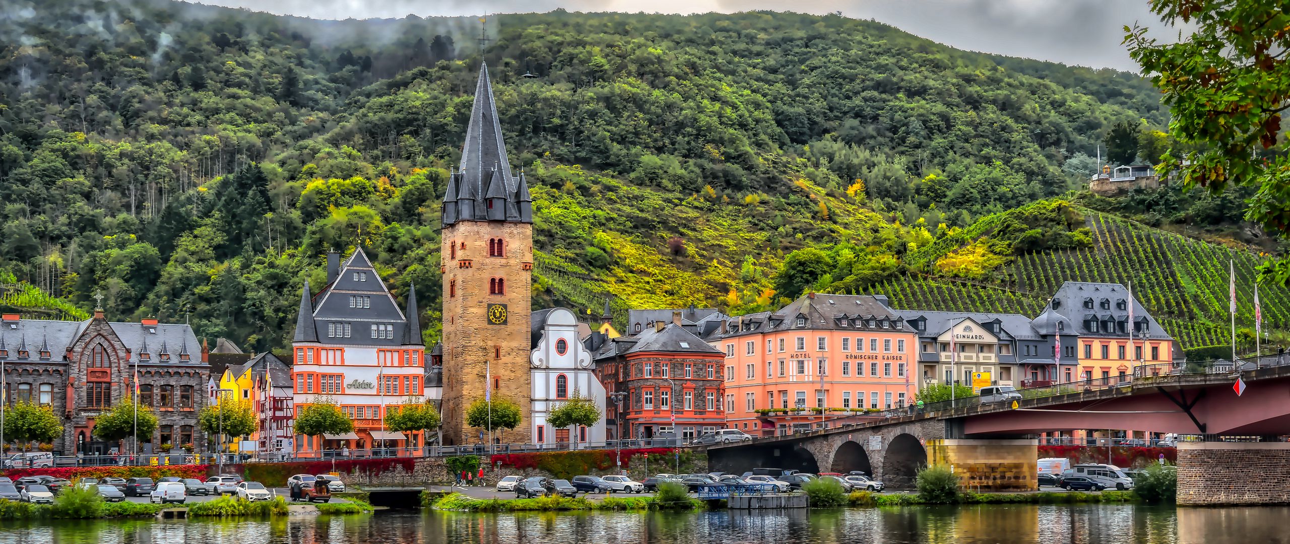 2560x1080 здания, мост, река, горы, облака, город обои два монитора 1080p