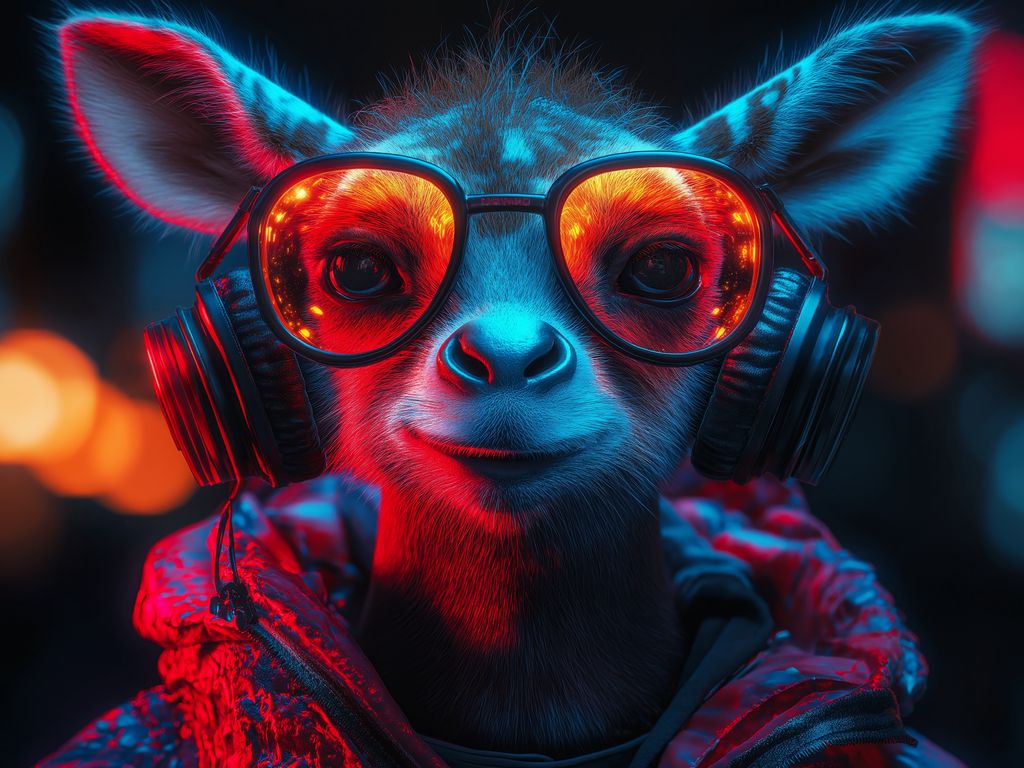 1024x768 животное, очки, наушники обои стандарт 4:3